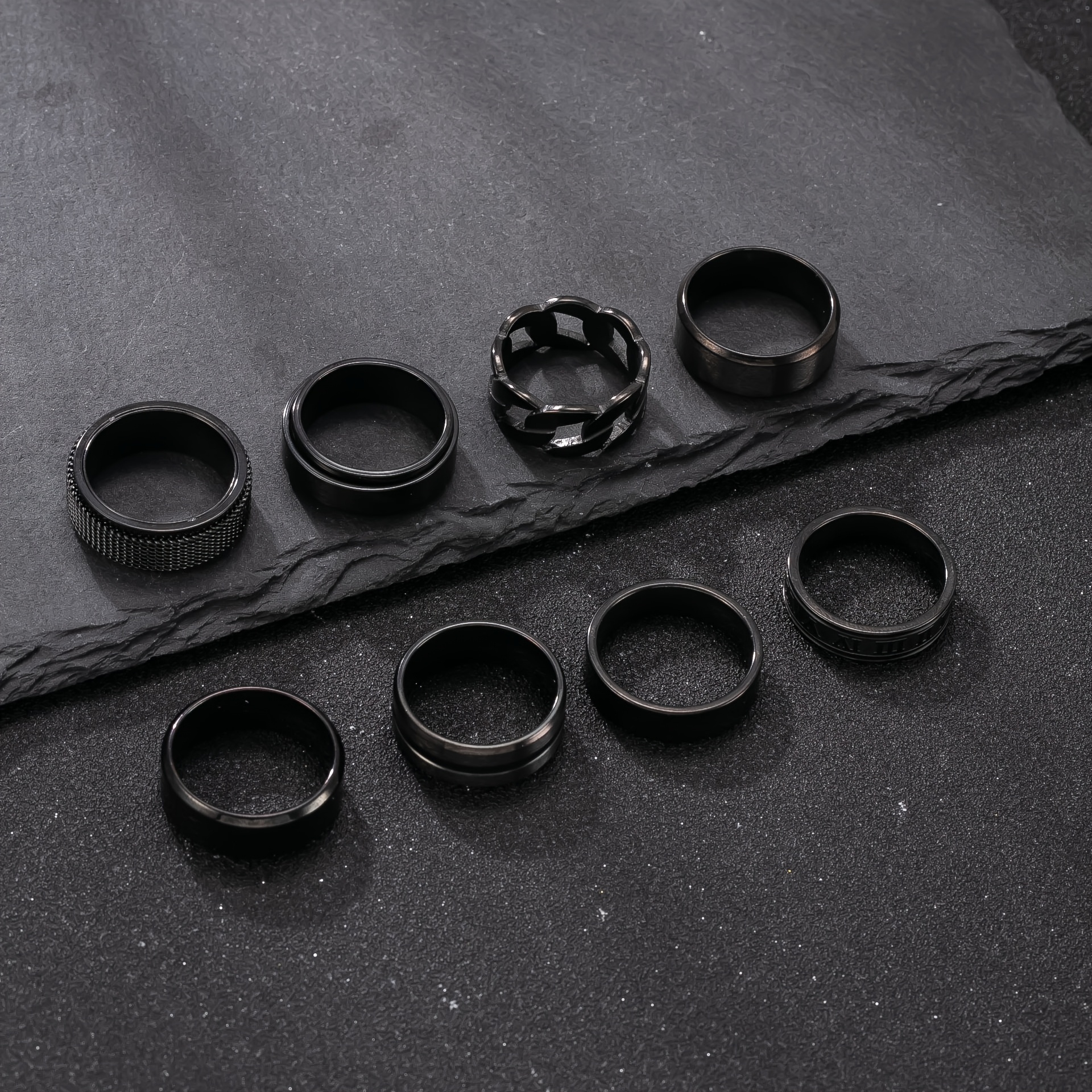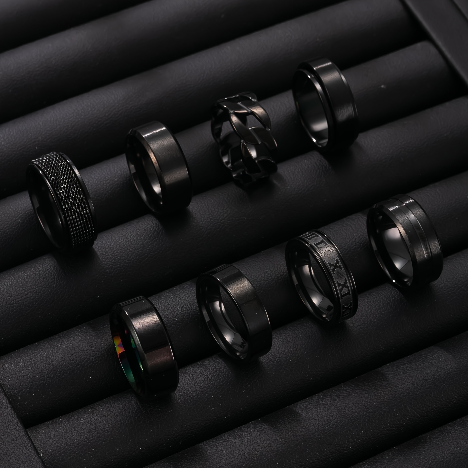 8pcs Fashion Stainless Steel Men's Ring Set, Minimalist Hollowed-out Geometric Rings, Men's Personality, Hip-hop, Punk Rings, Suitable for Daily Commute, Dating, and Party Wear, a Gift for Men